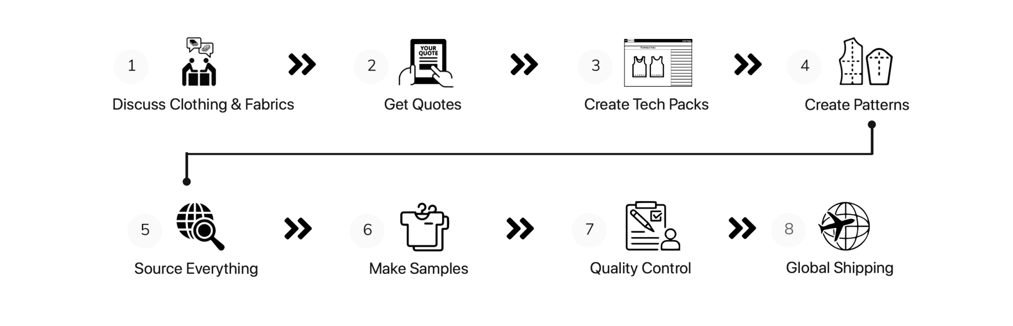 Send us your tech packs. Our highly skilled operators use modern IoT programmable sewing machines to consistently produce high-quality garments, while reducing errors and waste.